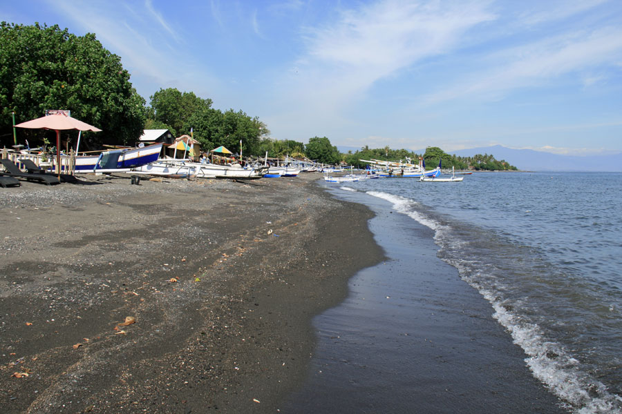| Lovinan maaperä on vulkaanista, joten rantahiekkakin on mustaa. |