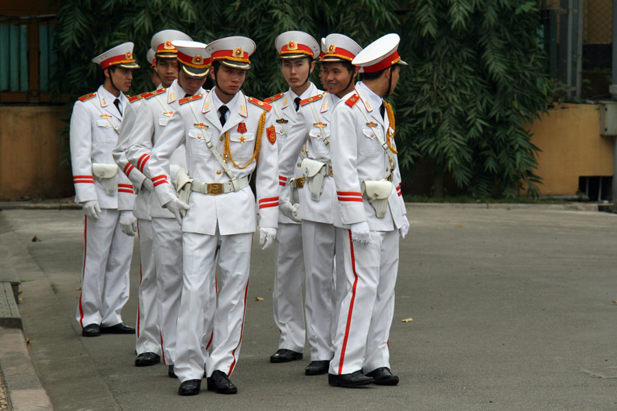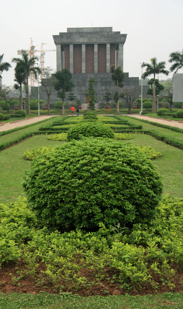 Päätimme pyhittää Ho-sedälle päivän Hanoissa. Jono Ho Chi Minh Mausoleum Complexiin oli pitkä kuin nälkävuosi. Jonossa tuli kävellä pareittain, käsiä ei saanut pitää taskussa tai puuskassa ja mölyt oli pidettävä mahassa. Tunnin jonotus palkittiin kun pääsimme sisälle mausoleumiin kunnioittamaan suuren johtajan palsamoitua ruumista. Näky oli eriskummallinen. Herran vahamainen ruumis oli aseteltu kelmeästi valaistuun lasiseen sargofagiin hämärän kammion keskelle. Ruumis sinänsä vaikutti oikein hyväkuntoiselta, viedäänhän se säännöllisesti vuosihuoltoon Venäjälle. Nurinkurista tässä palsamointihommassa on se, että suuri johtaja itse toivoi testamentissaan polttohautausta, mutta hänelle päätettiinkin rakentaa mahtipontinen pyhättö, jonne mies asetettiin kaiken kansan töllisteltäväksi. Mausoleumiin ei saanut jäädä hengailemaan, parijono marssi yhtä reippaaseen tahtiin ulos kuin oli tullut sisäänkin.